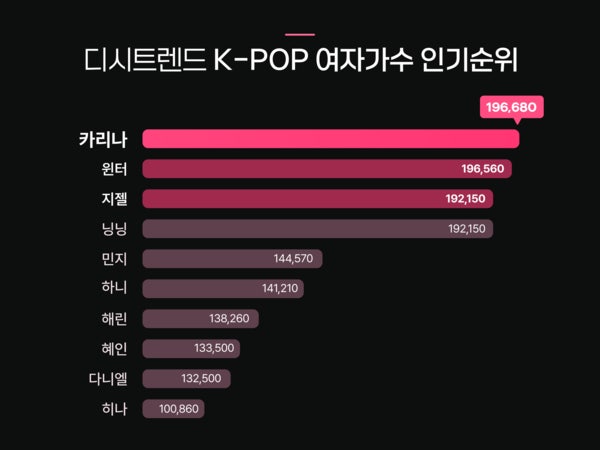 방탄소년단 만큼인가요? 어느정도 인가요~~? 케이팝 여자아이돌 가수 인기순위라는데 투표 해주세요~ 참고로 저는 윈터 한표입니다~~~
