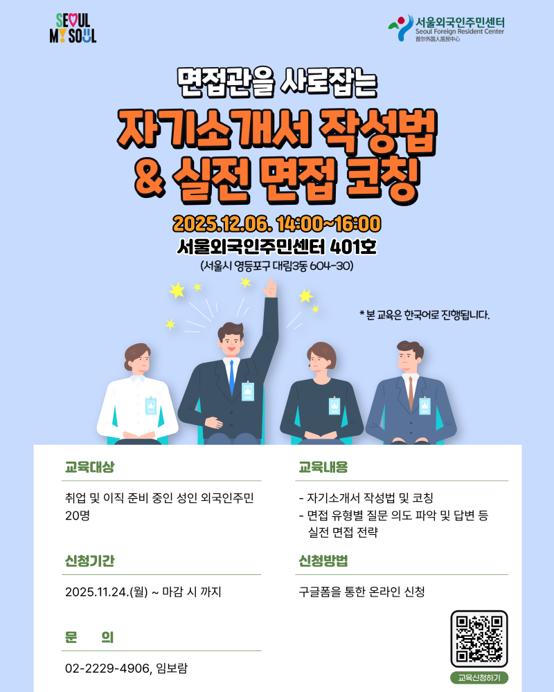 [외국인주민 시민역량 강화 교육]자기소개서 작성법&실전 면접 코칭